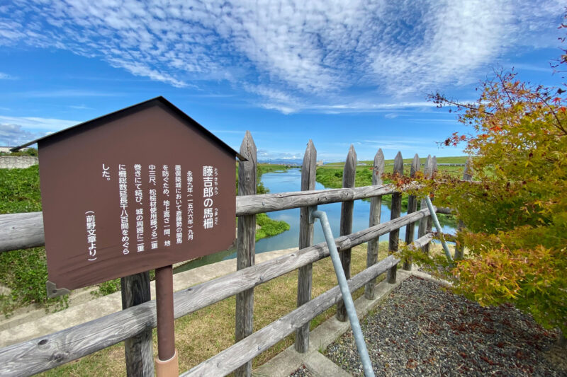 墨俣城址は犀川を挟んだ対岸からの眺めも美しく、対岸から望む模擬天守+桜並木の組み合わせは定番の撮影構図。訪問者はぜひ対岸にも足を伸ばすと良いでしょう。