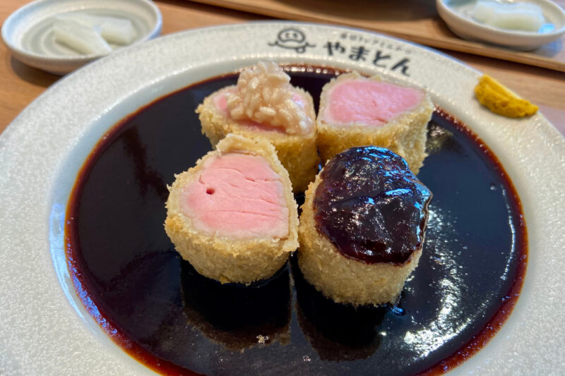 やまとんは、低温調理でじっくり火を通した厚切り豚肉を使うのが特徴で、柔らかくジューシーな食感が魅力。