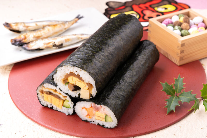 特に恵方巻き(恵方巻/太巻き寿司)は 20 世紀後半以降に広まった習慣で、恵方(その年の吉方向)を向きながら黙って食べることで幸運を呼び込むとされています。