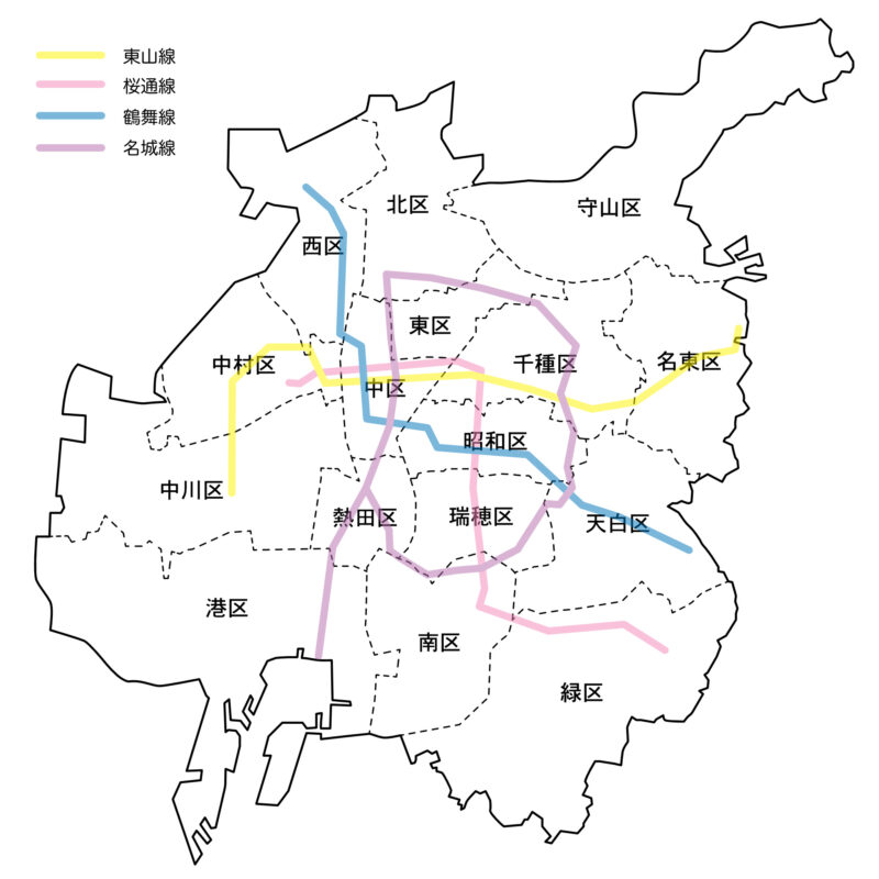 ※名古屋市営地下鉄の中でも、東山線と名城線は利便性が高い路線です。