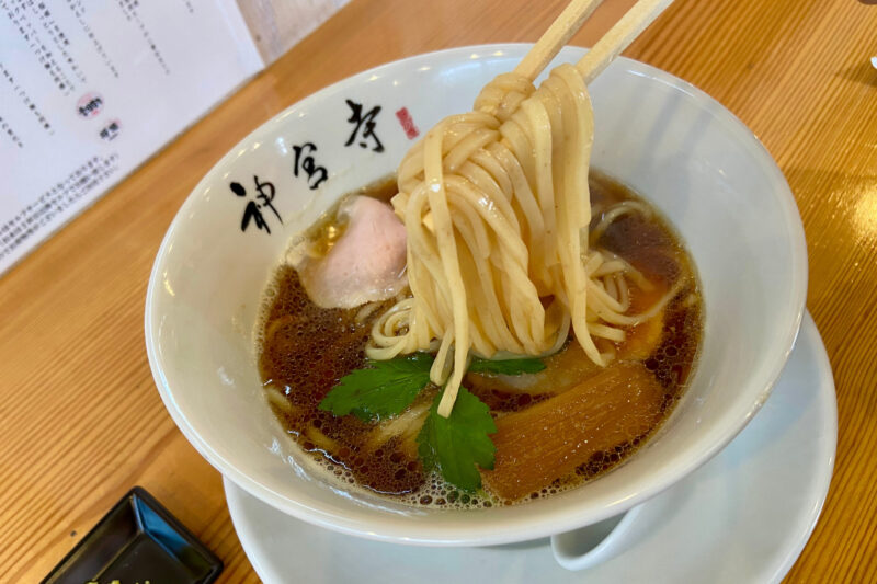 澄み切った醤油ダレが感じられるスープは、鶏の旨味をしっかり下支えにしながら重くなりすぎず、キレのある味わい。一般的な濃厚鶏白湯とは明らかに違い、「醤油らぁ麺」として引き算されたバランスが印象的でした。